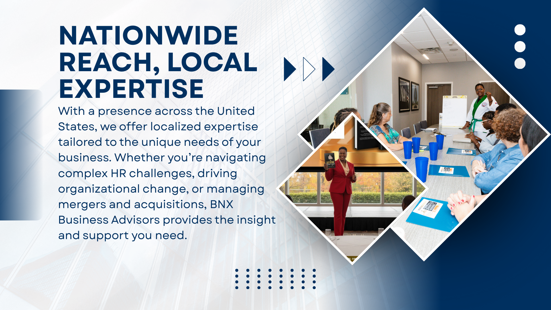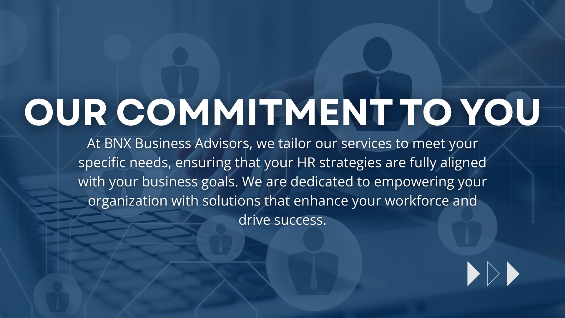 Our Commitment: At BNX Business Advisors, we are dedicated to delivering innovative and resilient HR solutions that drive organizational success. Our team of experienced professionals is committed to excellence, diversity, and client-focused service.